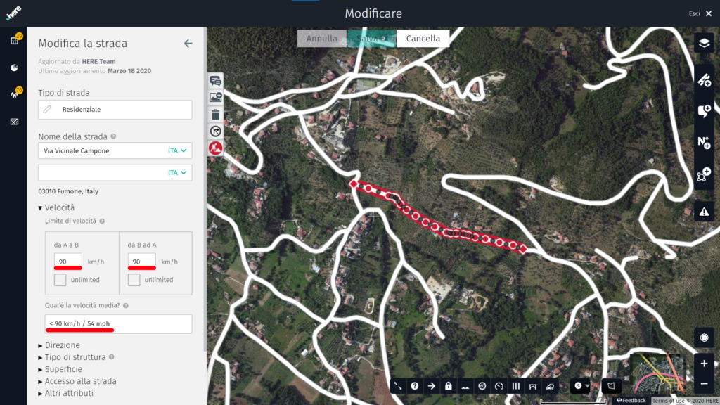 Sono quindi entrato nella HERE COMMUNITY Italia e ho cominciato ha usare il portale MAP CREATOR per correggere direttamente gli errori nella cartografia.